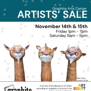The Graphite Arts Center is open to the public every Friday and Saturday 12 PM – 5 PM.  Stop by to visit The Gallery, chat with working artists (they are expecting you!), or hang out in the Art Library where there are always supplies out.  We hope you come once, stay longer than expected, and […] ...